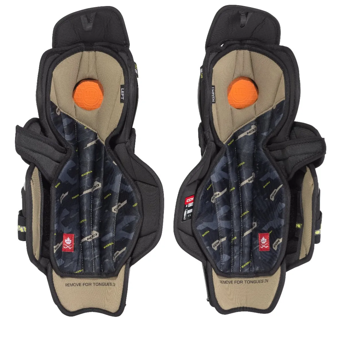 The New Tacks As-V Protective Series Has Been Developed After Many Hours In The Lab To Offer Maximum Protection And Improved Mobility. This Results In The Anatomical Shield Design That Protects You And Provides Unbeatable Fit. The Shin Guard Follows Your Movements On The Ice Thanks To Flexmotion Technology And Is Game-Ready On First Use. The New Adaptfit System Allows You To Adjust The Shin Guards To Your Desired Fit. For Example, Whether You Want The Pad Outside Or Inside The Shin Guard. The Shin Guard Does Its Job, While You Do Yours. Construction: Anatomical Shield Design, For Maximum Protection And Full Mobility Calf Guard: Molded Calf Guard With D3O Bullet Protection, Absorbs Impact Kneecaps: Jdp Knee Cap With D3O Material On The Inside Of The Knee, Dissipates Force From Bangs And Blows Shin Caps: Anatomical Pe Shin Cap With Tapered Fit And D3O In The Lower Part. Gives You An Optimal Fit And Maximum Protection Thigh: Molded Flexmotion Thigh Protector In Eva Foam Attachment: Adaptfit, Dual Straps Across The Calf In Adjustable Length Provide Unbeatable Comfort Extra: Molded Hd Foam And Pe Plastic Inserts In Side Protectors For Extra Protection